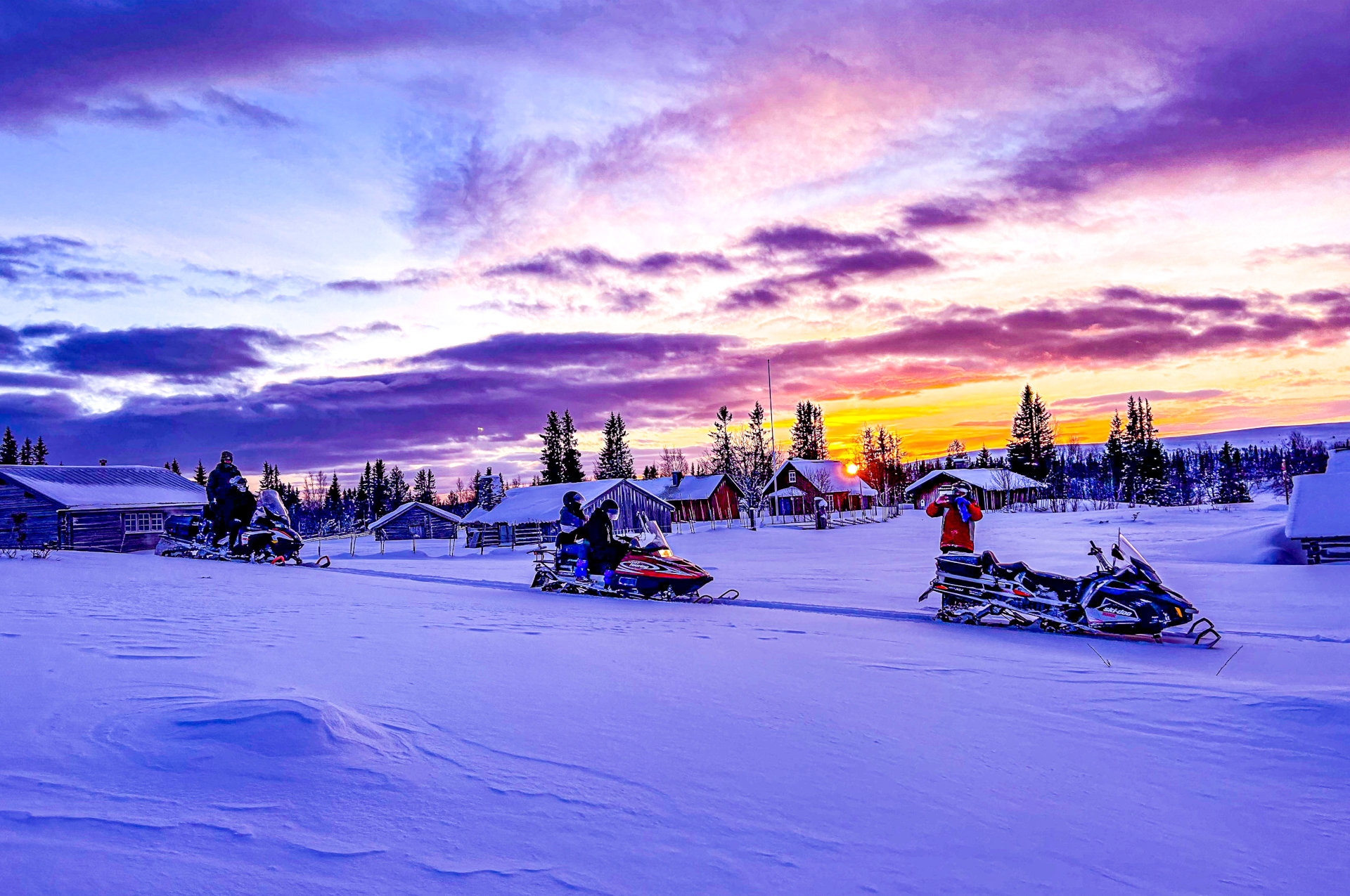 Auf dem Galå Fjällgård können Sie Ihre exklusive Motorschlitten-Tour buchen oder auch eine Selbstfahrer-Tour mit dem Schneemobil starten.