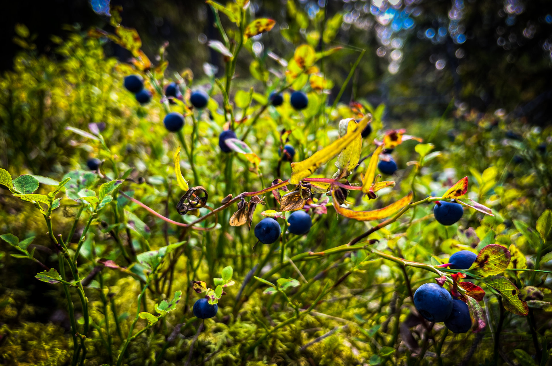 Blåbärsplockning vid Stortjärnberget. Man kan även hitta renhorn utanför stigarna.