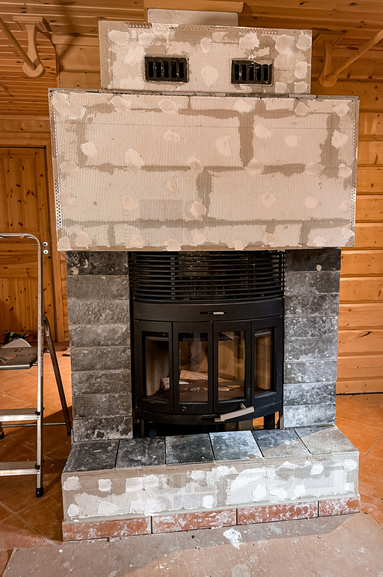 Vi installerar en ny, mer effektiv kamin i stugan Freja.