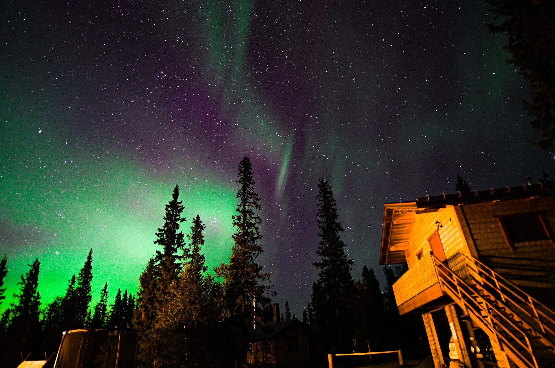 Lupinerna blommar så vackert framför timmerstugan Balder