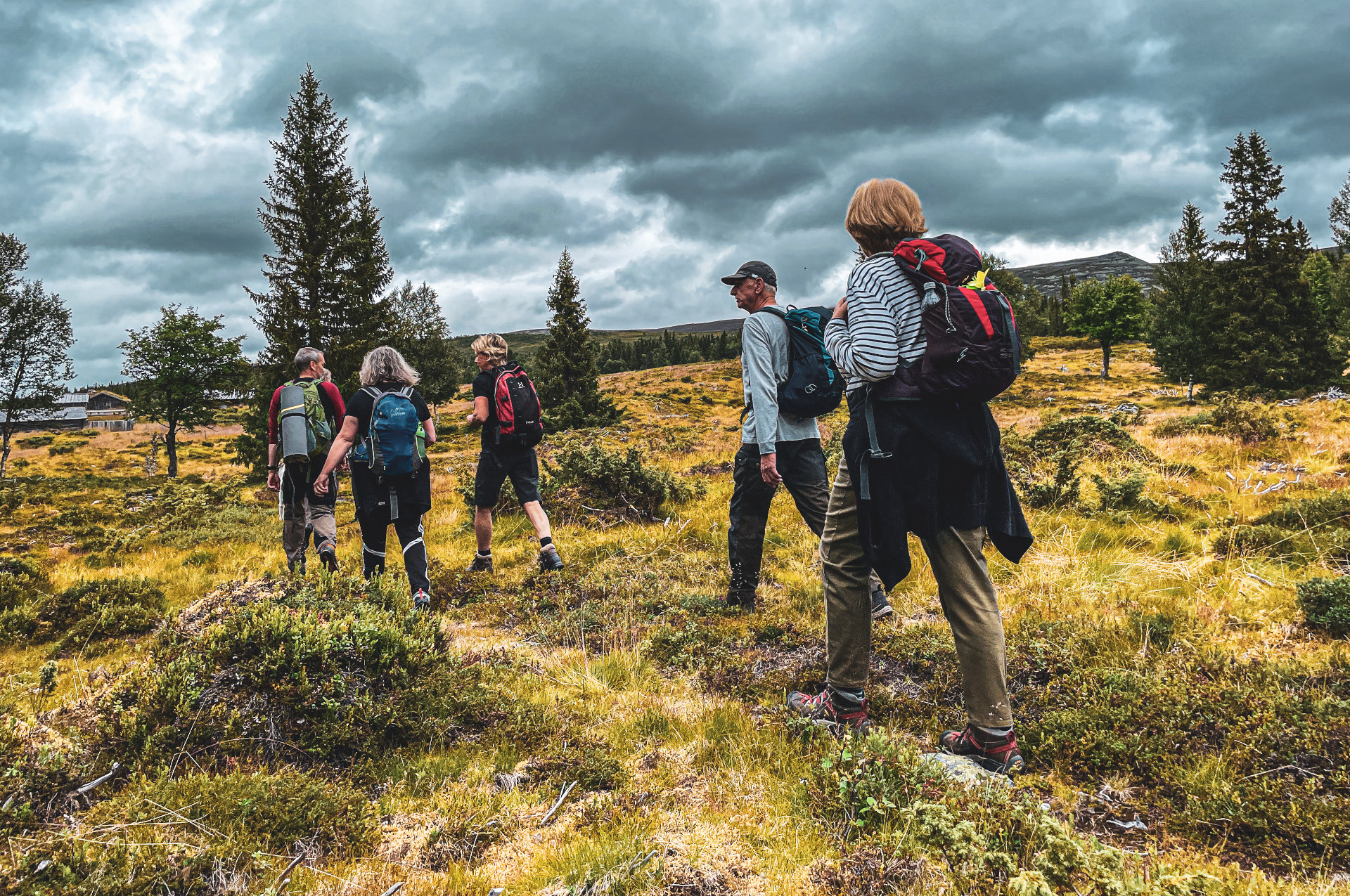 Vandring till Östra Arådalen och rast vid en av de restaurerade fäbodstugarna
