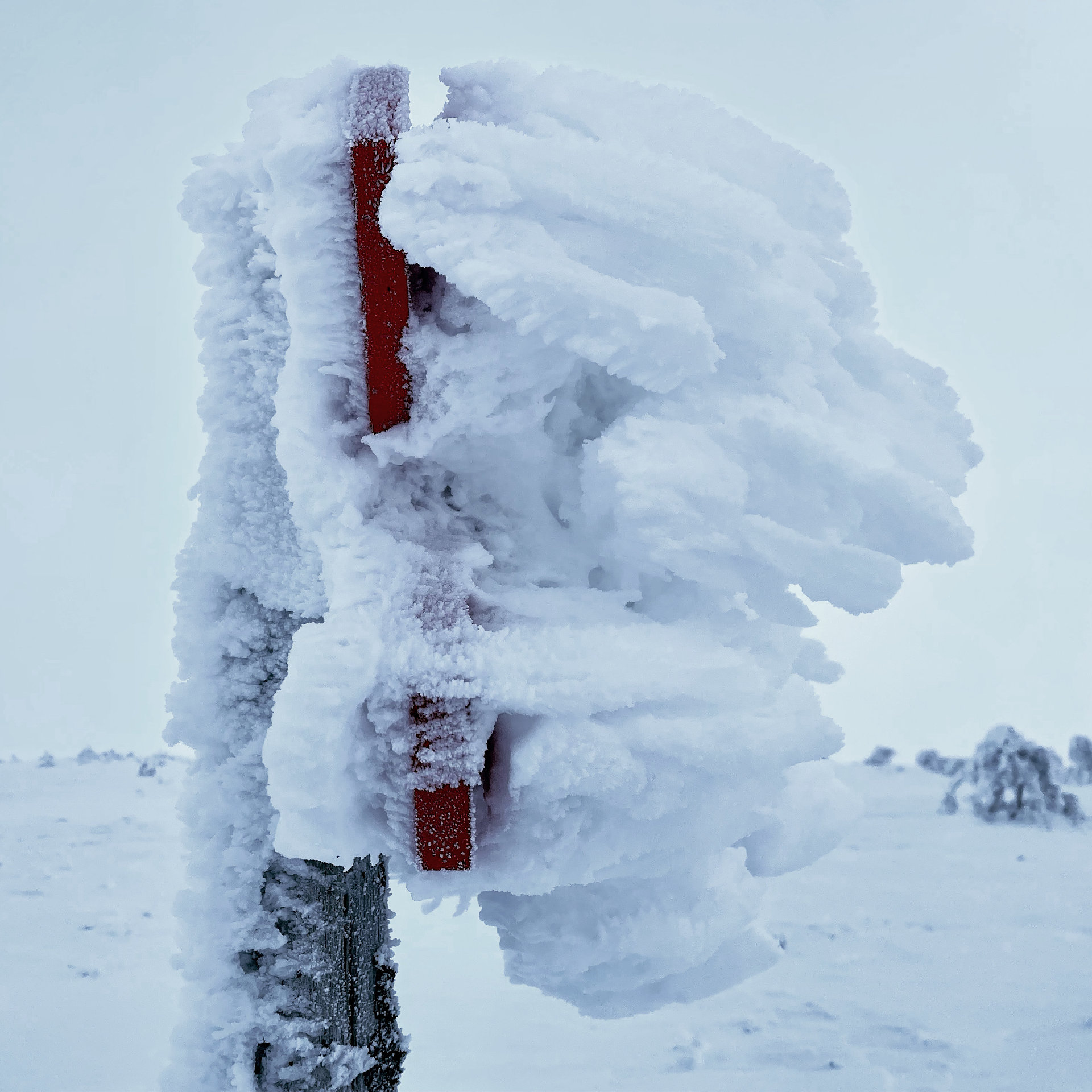 Vereiste Winter-Wegmarkierungen auf dem Weg zum Visjön. Hier kann man mit Ski oder Schneeschuhen laufen.