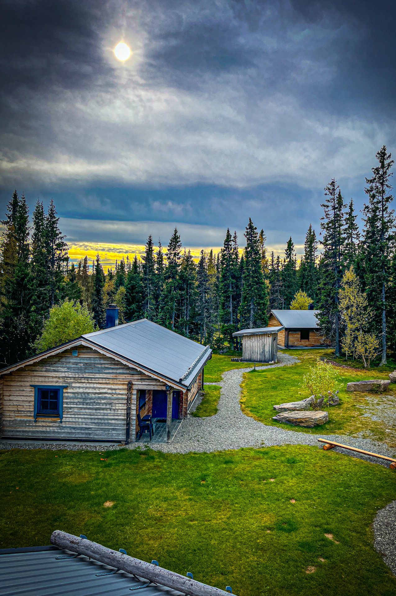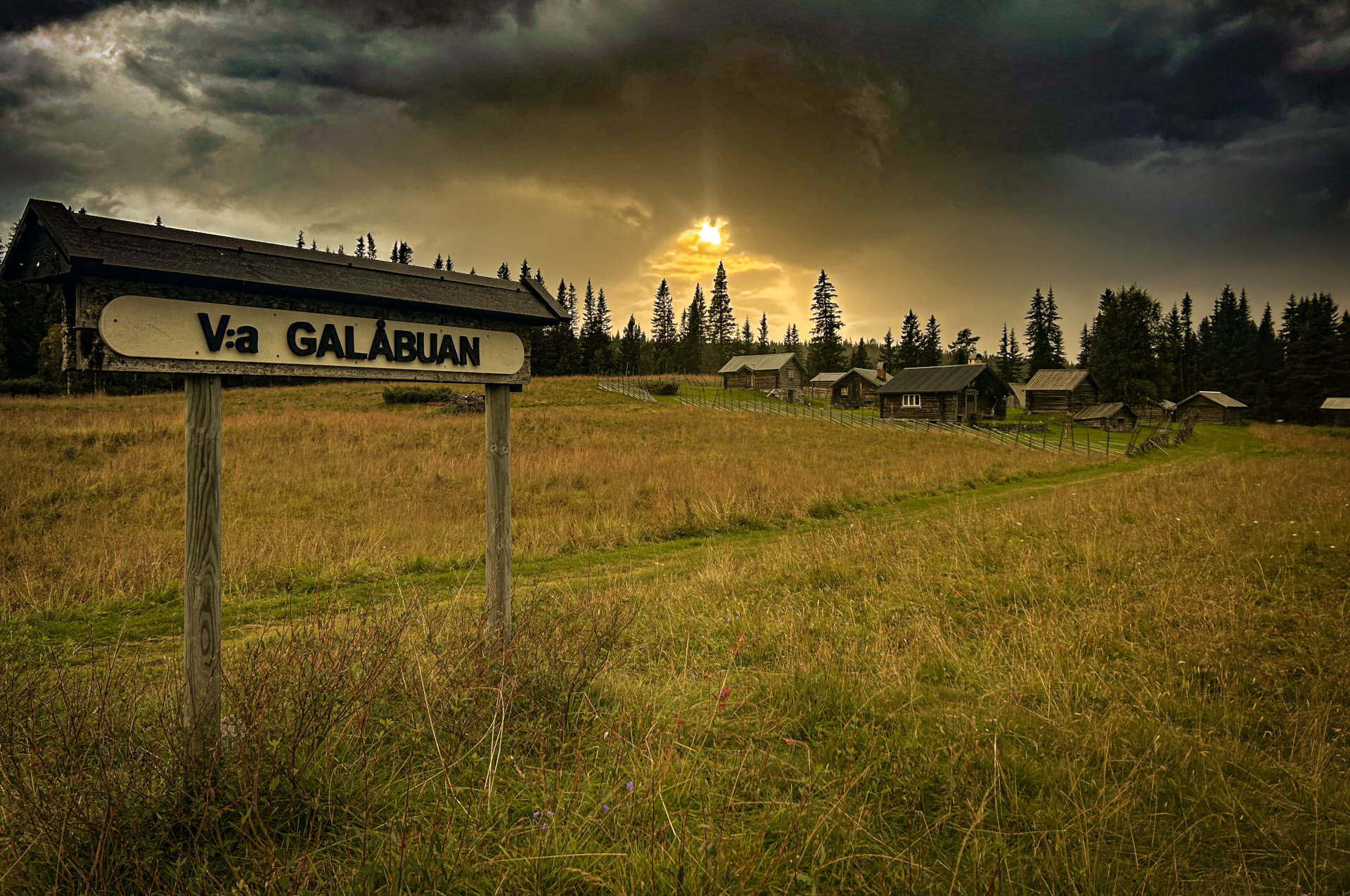 De avondzon op de Galåbodarna-bergweide aan de Fäbodvägen in Jämtland