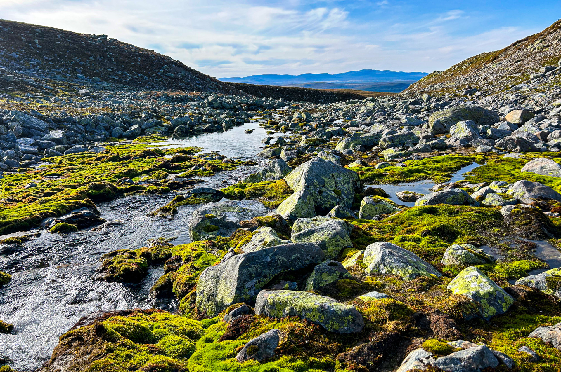 Het wordt herfst in de bergen - hier op een top van de Hästryggen in Jämtland