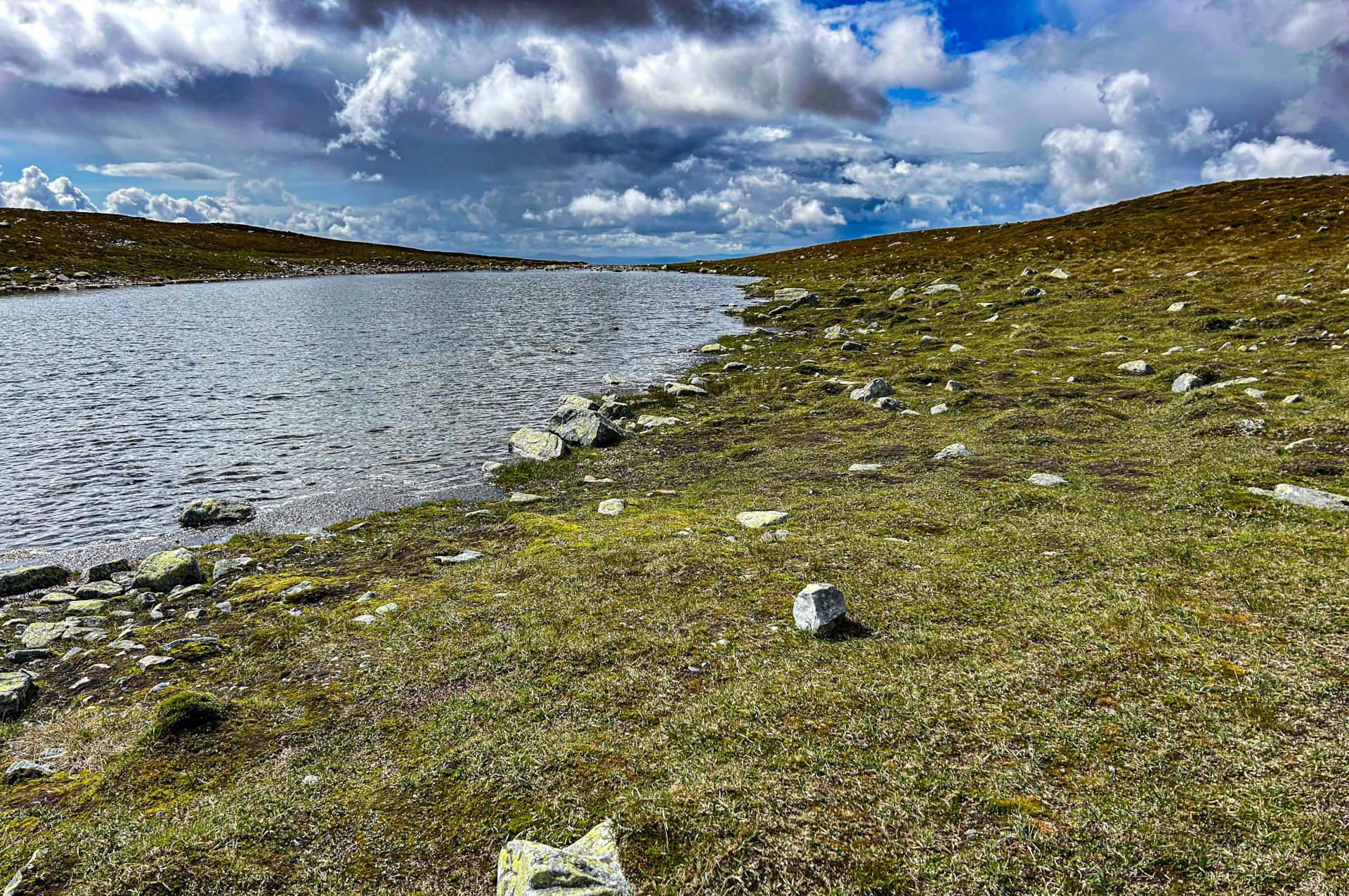 Een klein bergmeer, gelegen tussen de toppen van de Hundshögen en de Hästryggen