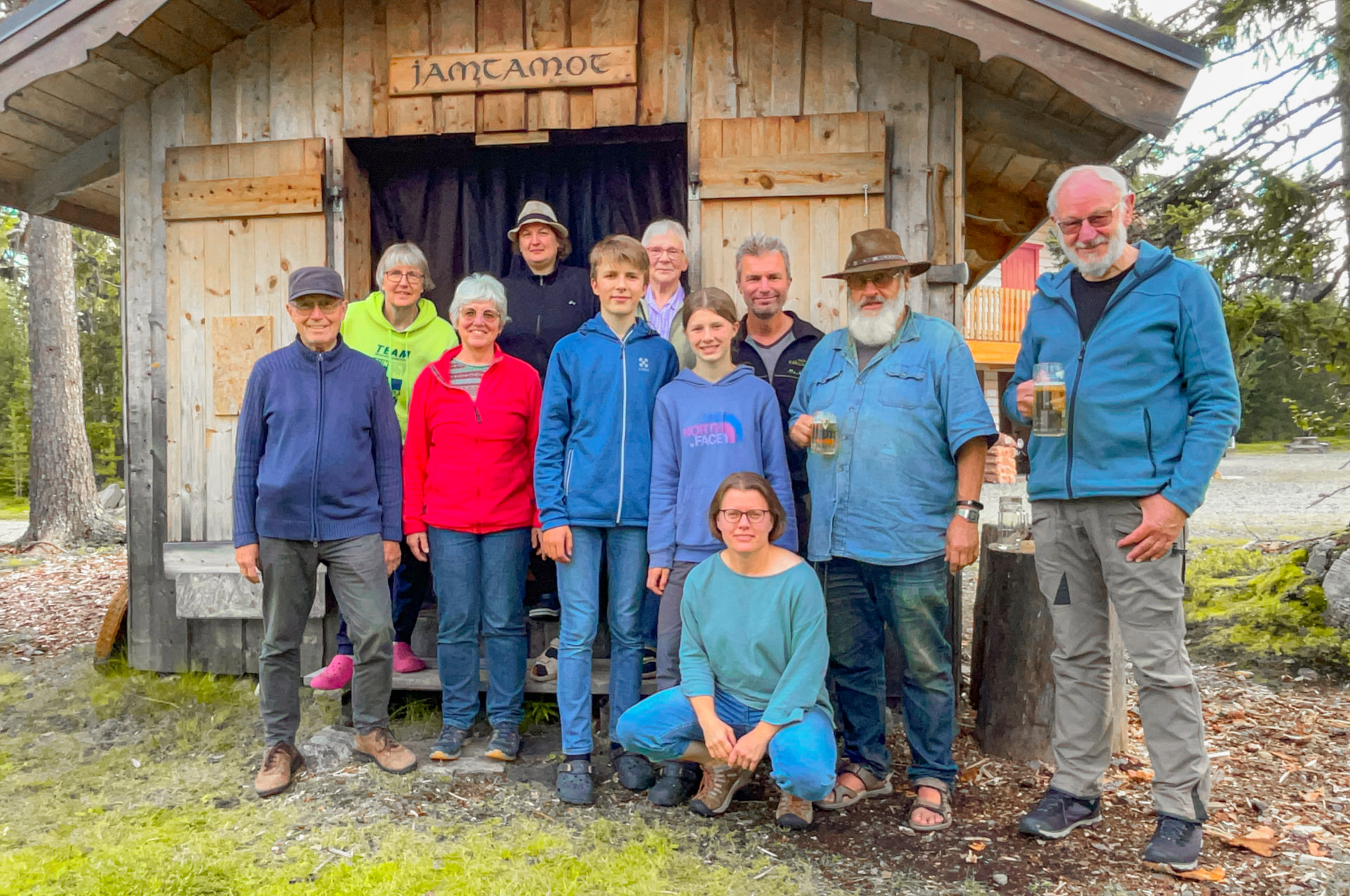 Groepsfoto met enkele van onze trouwe gasten van lange jaren voor de grillhut