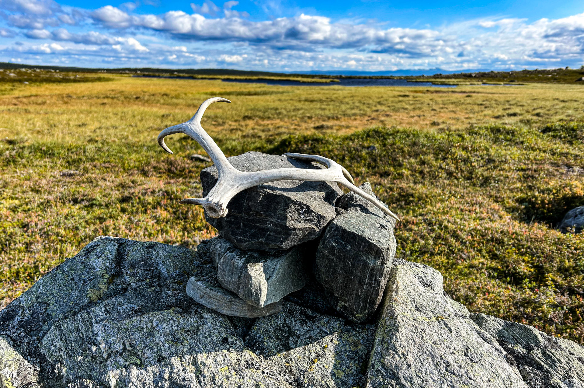 Iets buiten de paden is het gemakkelijk om rendiergeweien te vinden in Jämtland