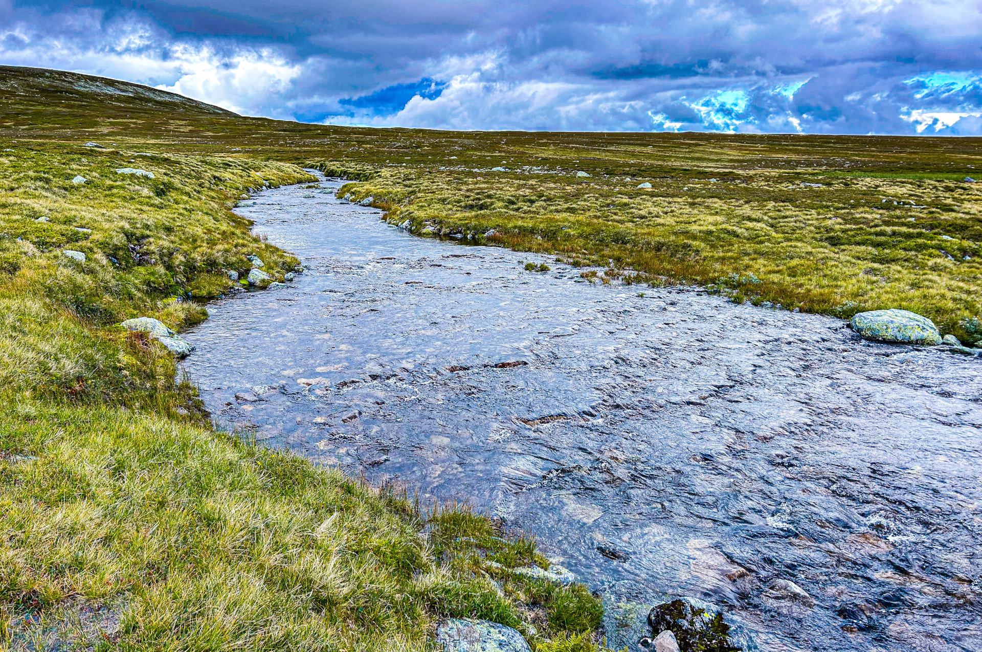 In de kloof van een bergbeek tussen Hästryggen en Hundshögen