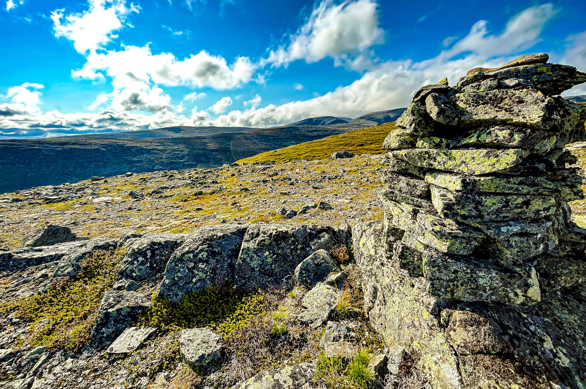 Het wandelpad van Arådalen naar Hundshögen is duidelijk gemarkeerd met steenmannetjes